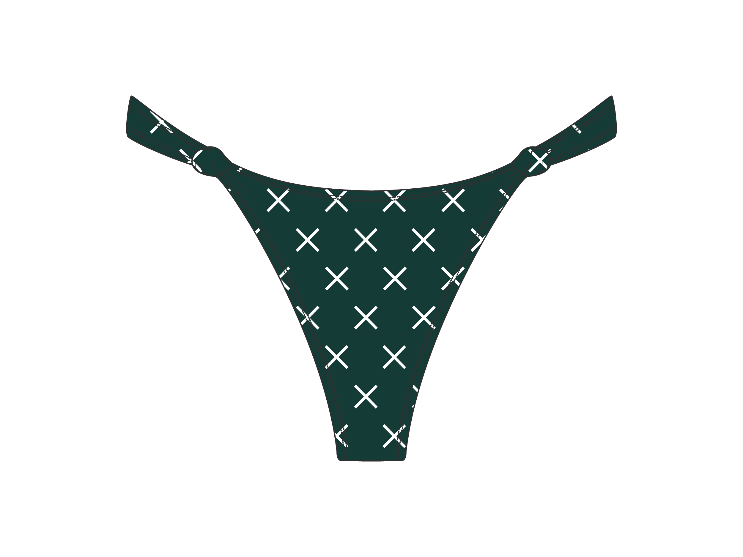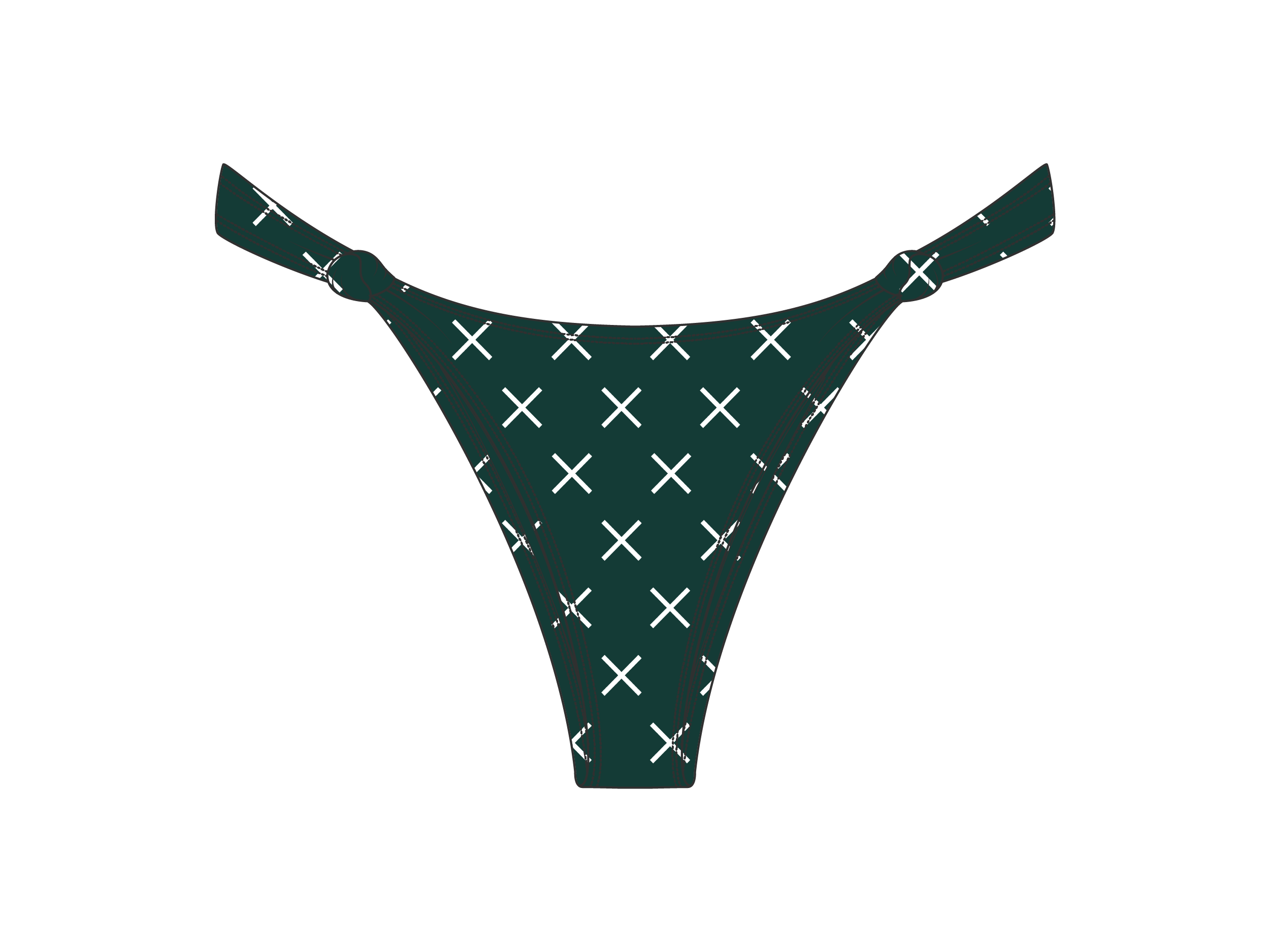 Bring back the 80’s with our new sexy bottoms in a modern day BoutineLA type of way. This thong style bottom has a high V shape for that extra hipster flirty feel. Match these with our twist top for the perfect touch! NOW in the ICONIC X Print all over.