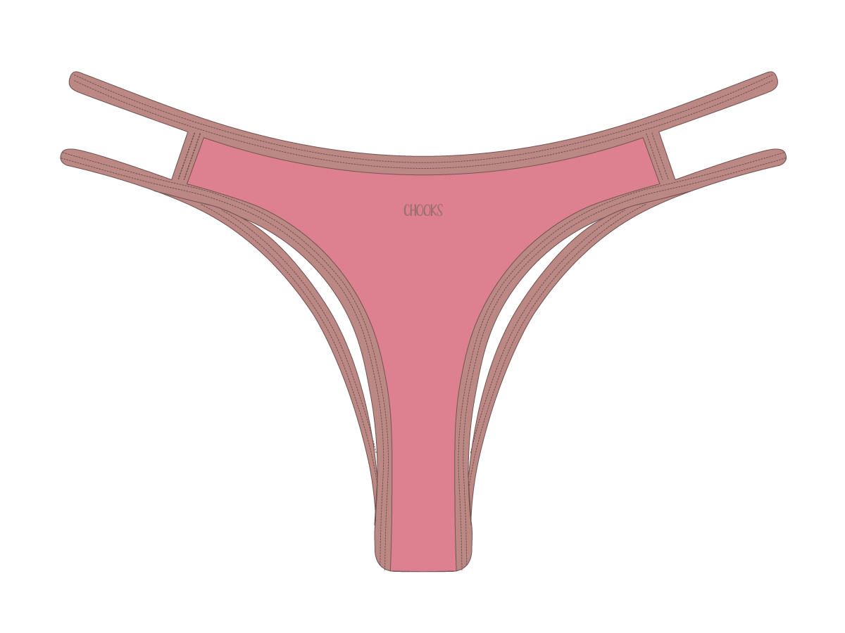 Our Two Strappy bands give our extra cheeky classic strap bottom a sexy spin. Two is all you need in this epic rendition of our very loved scrappy bottom offerings.