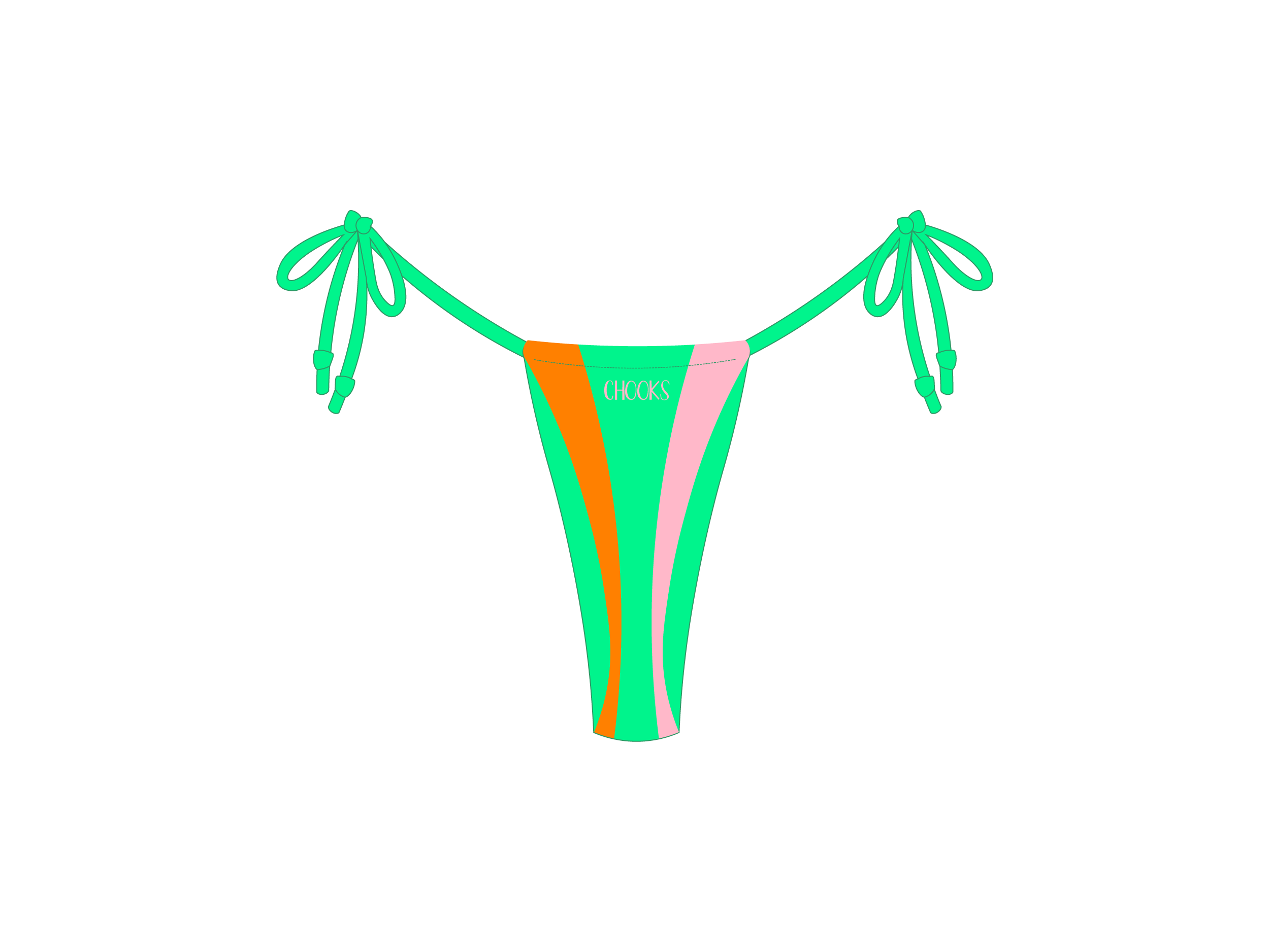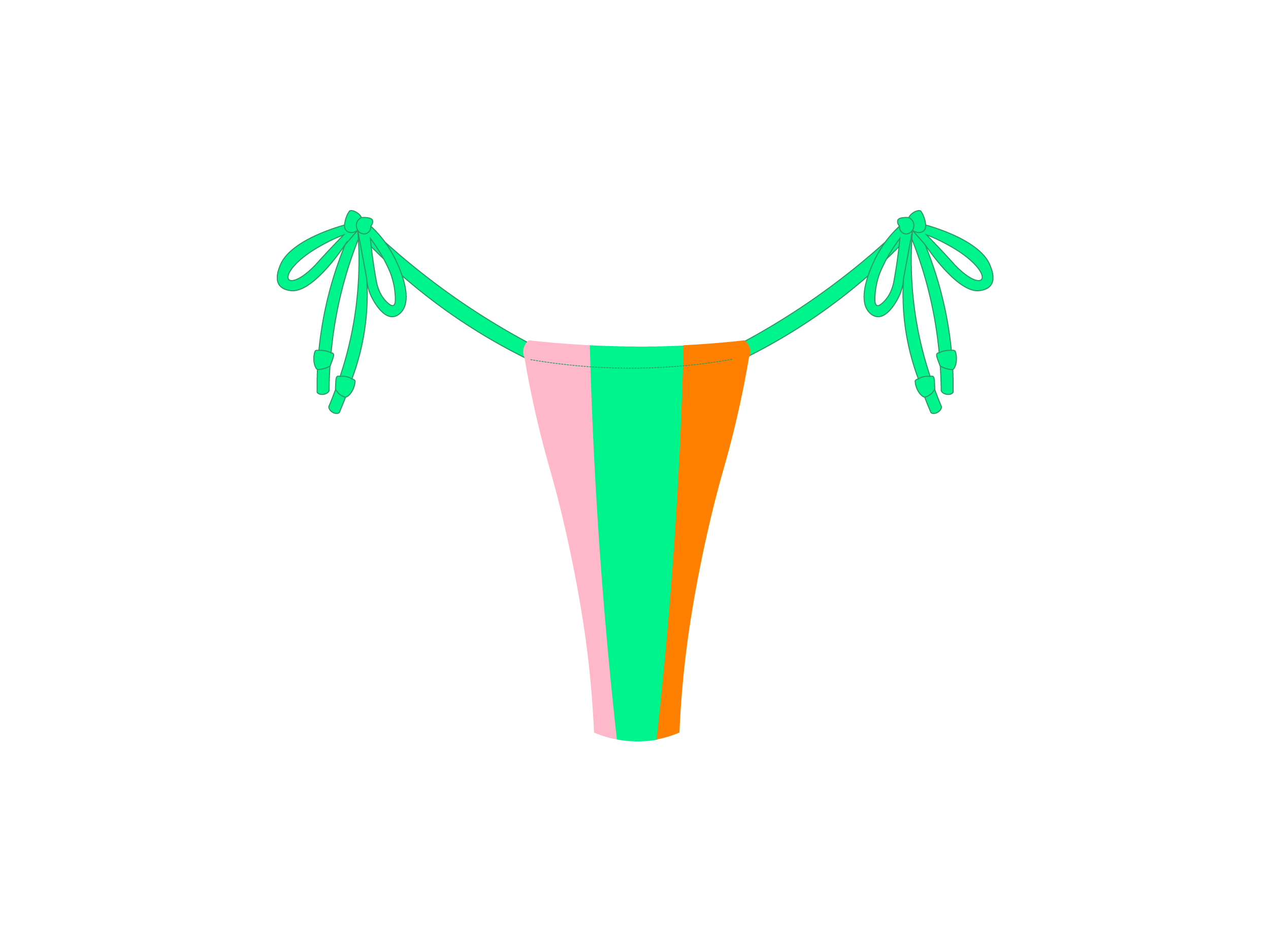 The ultimate string bikini bottom remixed in color blocks: teeny tiny with ties at the sides and plenty of cheek peek.