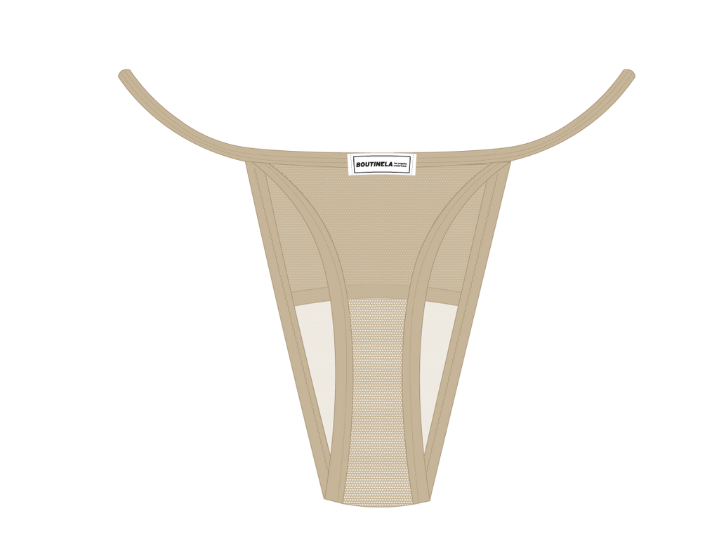 Khaki Mesh Lace Thong Panty