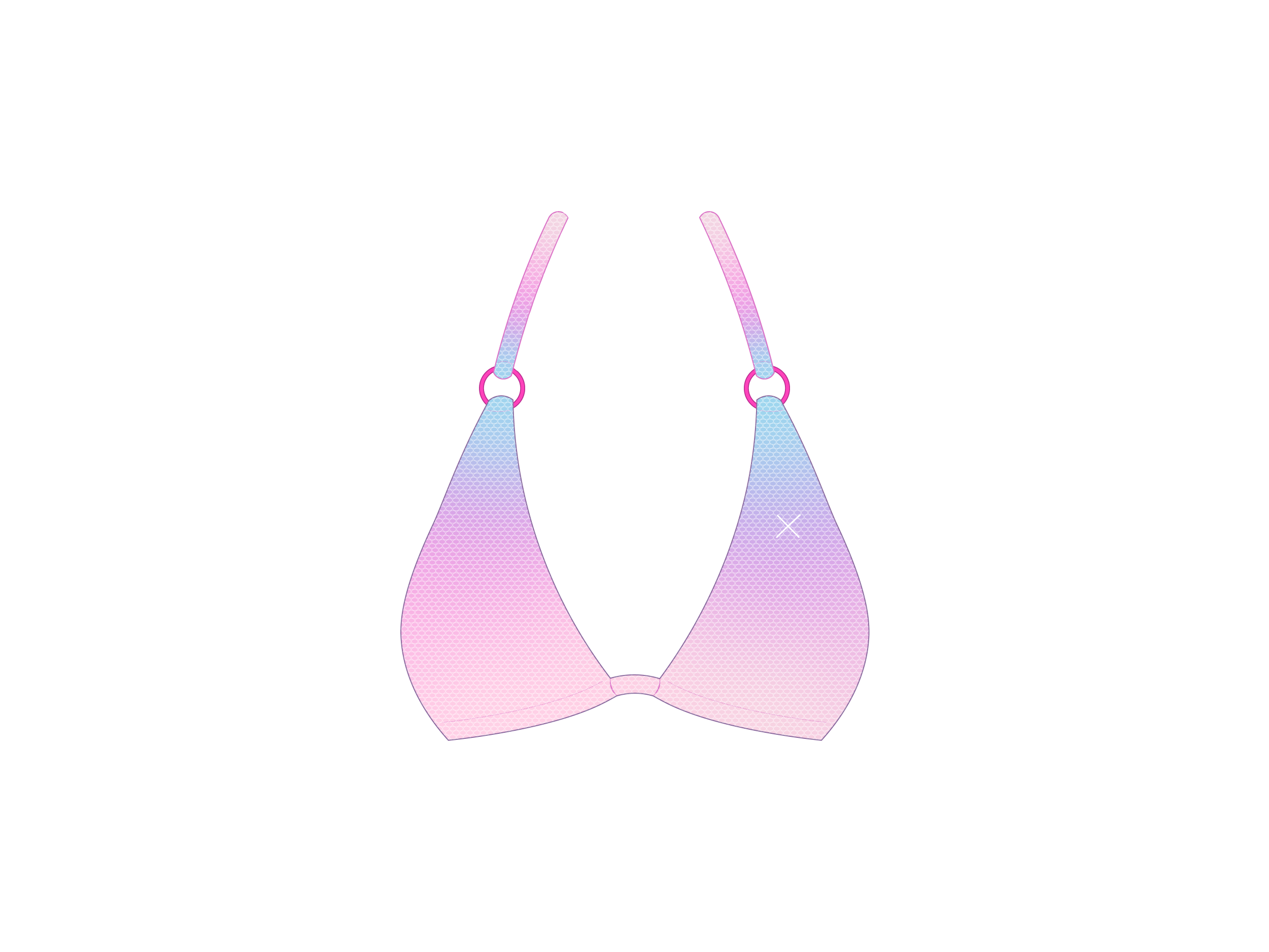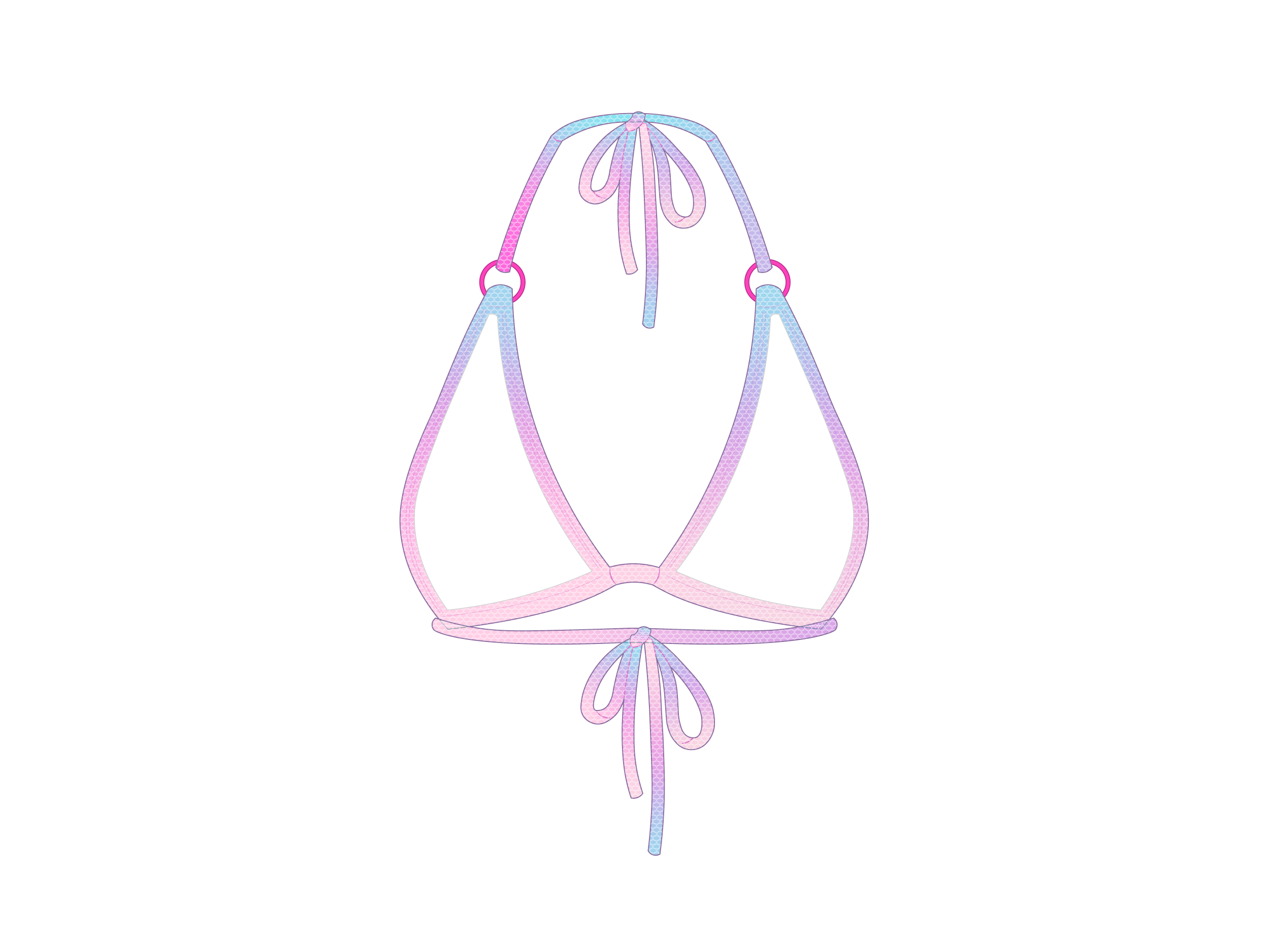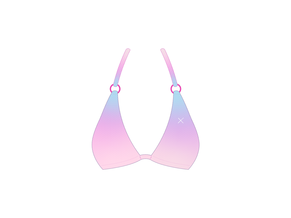 The Around top first introduced with the Ombré collection. This top style features a round ring hardware, to a traditional triangle top style. With a slightly minimal cup cut, this top is likely to draw admiring stares.